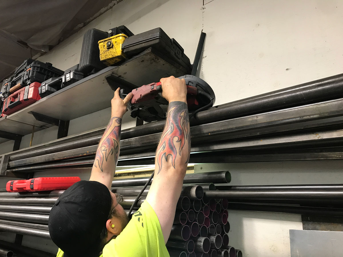 Bill puts on a light show with the grinder, smoothing out those sharp edges.