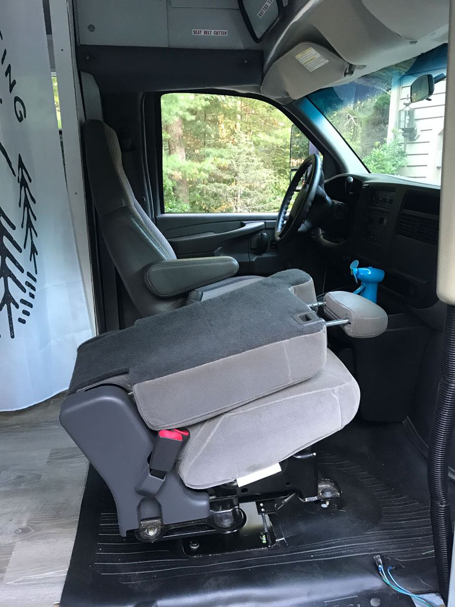 That’s how we installed our navigator / snack passer seat in the bus. Many, many thanks to Bill Doyle, not only for his mad skills, but his mad sense of humor!