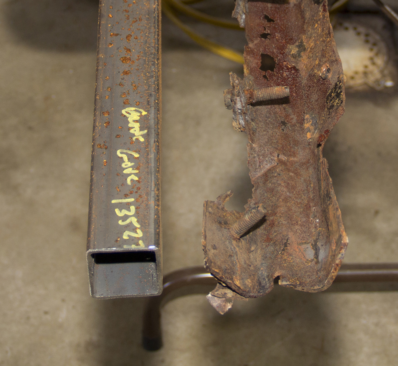 On the left is the new beam in all its square, non-rusted glory. On the right, is the old C-Channel beam, which is, umm, more like a W-Channel in this instance.